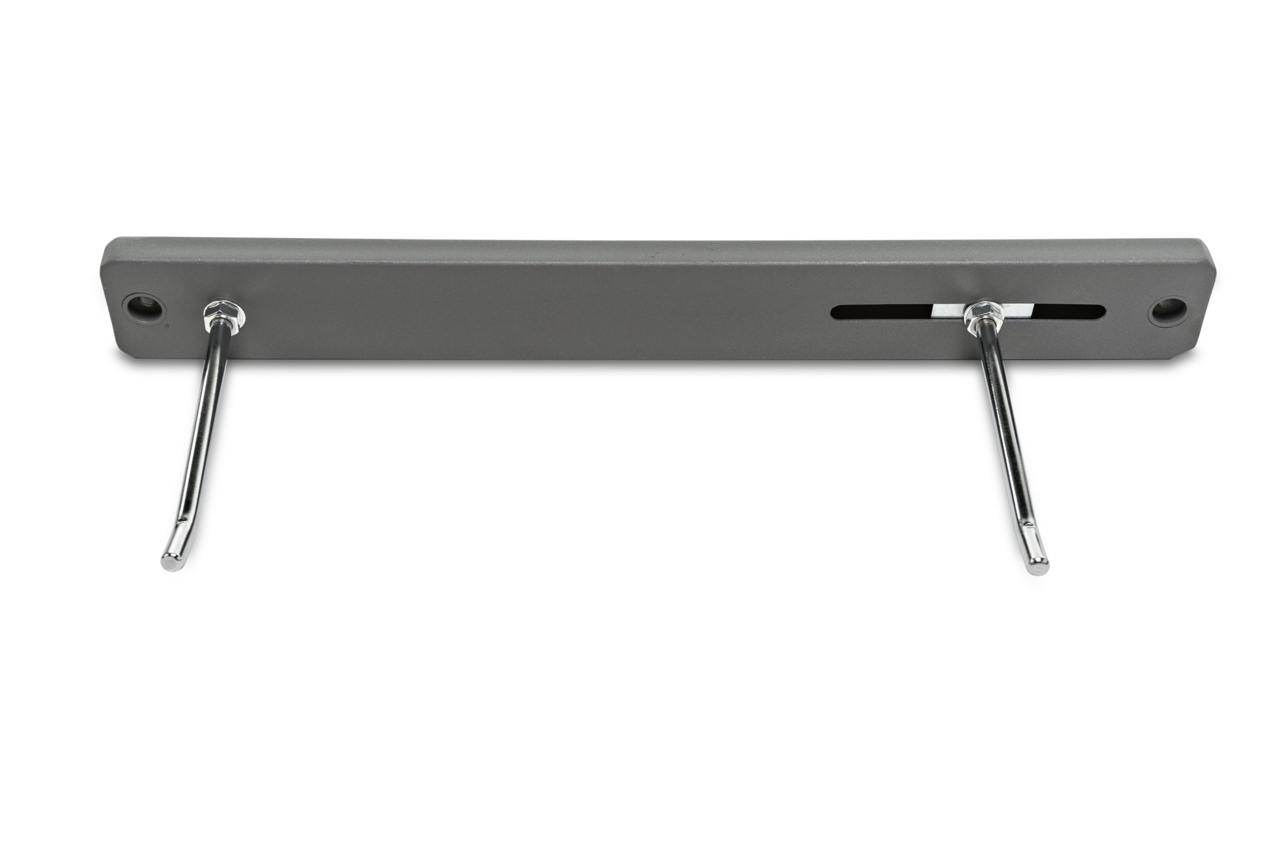Material: Acero ultra resistente. Color: Gris Las barras de los soportes se mueven para adaptarse a las medidas de los agujero que hay en las colchonetas. Medida: La barra se puede modificar entre 37 y 52 cm Peso:2 Kg
